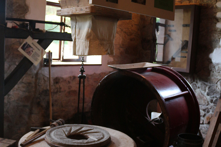 Beim Mühlrad handelt es sich um ein sogenanntes oberschlächtiges, das heißt, das Wasser wird vom Mühlgraben von oben auf das Rad geleitet, wodurch die Welle und damit die Mühlentechnik in Gang gesetzt wird.